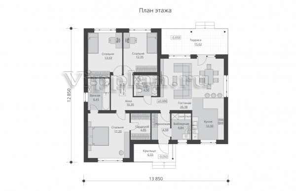 | Размеры дома: | 12.85м×13.85м |